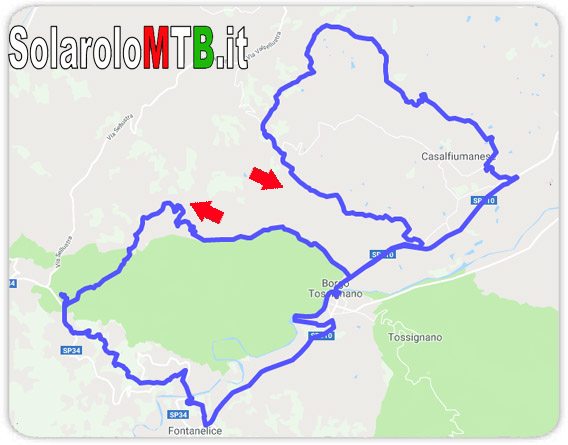 Itinerario impegnativo ben presto ci si presenta alla vista una delle formazioni a calanchi più vasta e spettacolare di tutta la Romagna.Ad ogni curva e ad ogni variazione di luce questo paesaggio inquietante e nello stesso tempo affascinante si mostra al viaggatore nelle sue mille sfaccettature fino alla targa posta dove cera la casa che diede i natali a Luca Ghini, famoso medico e botanico imolese. Il sentiero si abbassa un po' poi iniziano i Ponti di Croara (bellissimo passaggio), stretto crinalino sulle argille, di breve durata, che conduce ad un sentiero più stabile e poi alla strada asfaltata.L'itinerario è stato percorso completamente dal Team di Solarolomtb.it